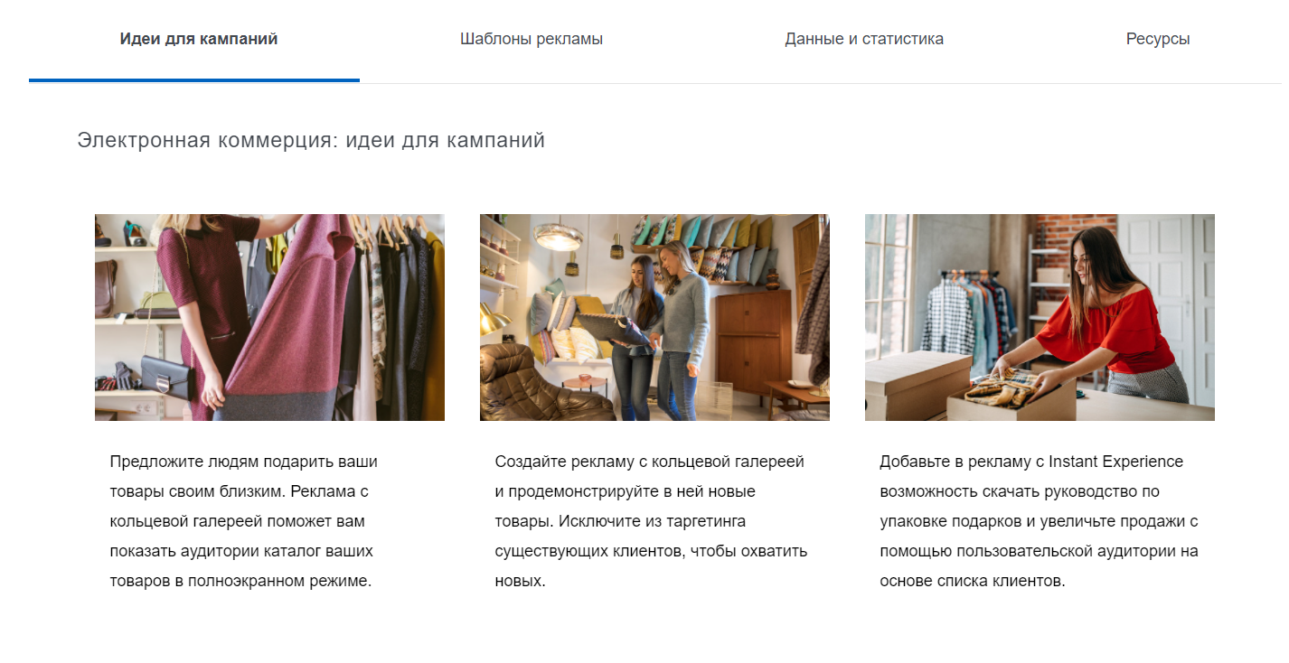 У вкладці «Шаблони реклами» ви можете створити контент за допомогою готових шаблонів банерів і тестів. Потрібно буде тільки адаптувати їх під ваш бізнес і цілі.