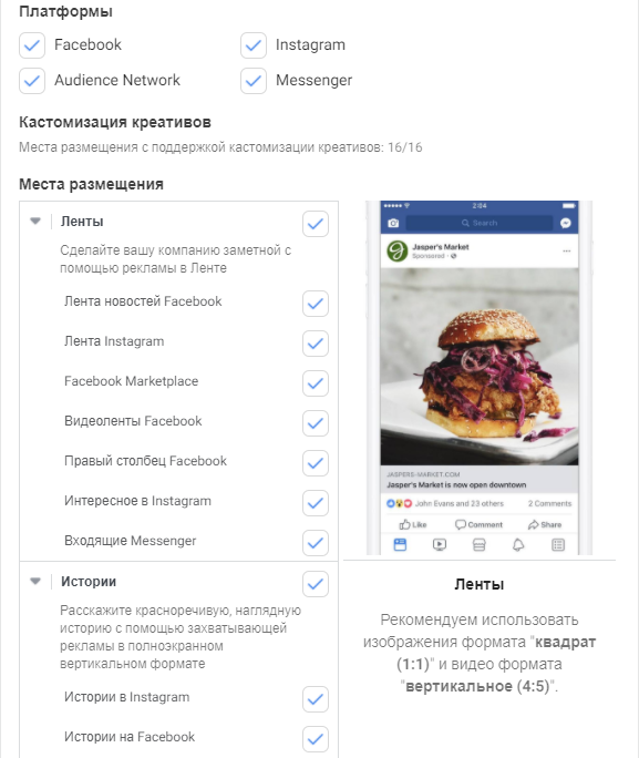 - Автоматичні місця розміщення — система Facebook розподілить бюджет вашої групи оголошень залежно від того, де ймовірний найкращий результат.