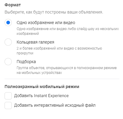 - Вибір формату оголошень.