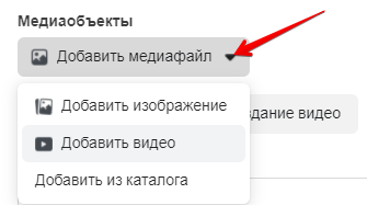 Далі додаємо мультимедійні об'єкти. У списку оберіть файл, який хочете додати: зображення, відео або товари з каталогу.