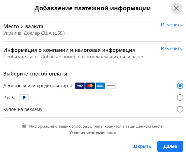 Введіть і збережіть ваші платіжні дані.