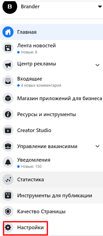 Спершу заходимо на вашу бізнес-сторінку Facebook і натискаємо кнопку "Налаштування".