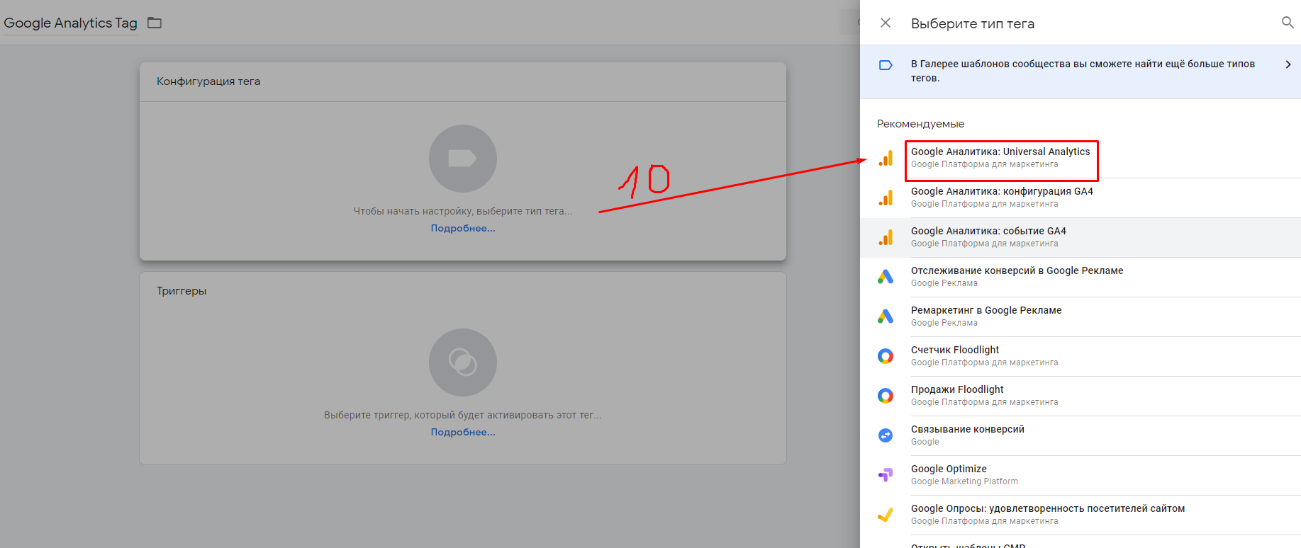 - Потрібно створити тег Google Analytics. Можна сказати, що в подібній реалізації цей тег буде основним, оскільки завантажуватиметься найпершим, розміщуючи код лічильника на сайті.