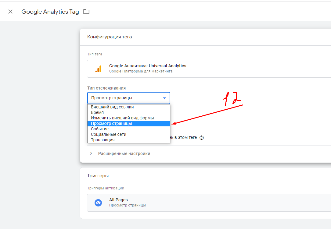- Вибираємо тип відстежуваної взаємодії «Перегляд сторінки».