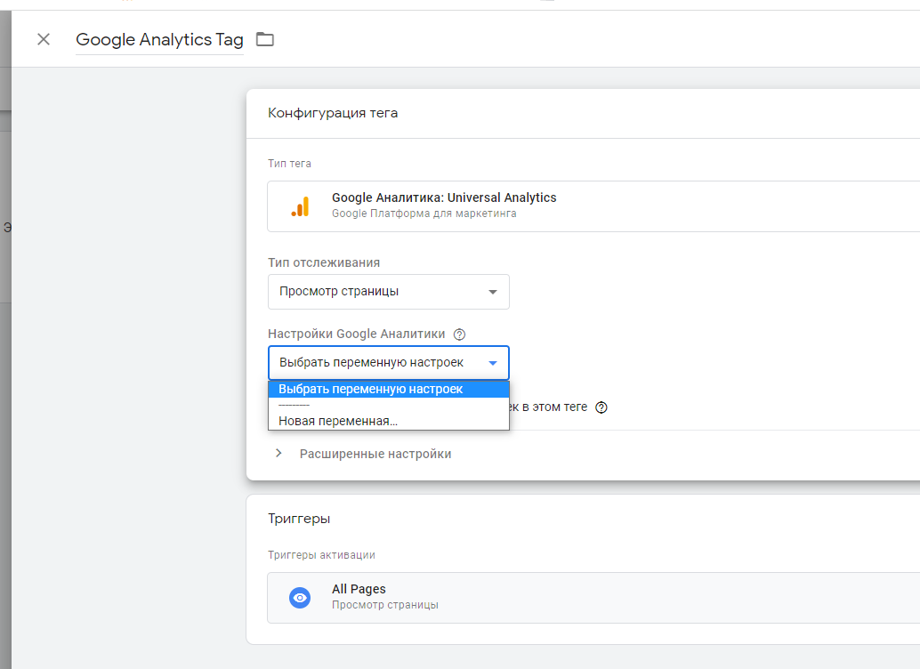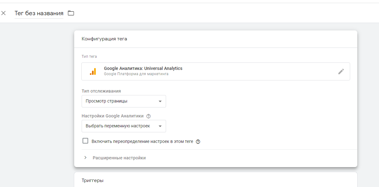Коли тип тега та тригер вибрано, можна розпочати налаштування конфігурації.