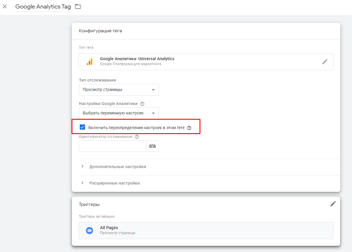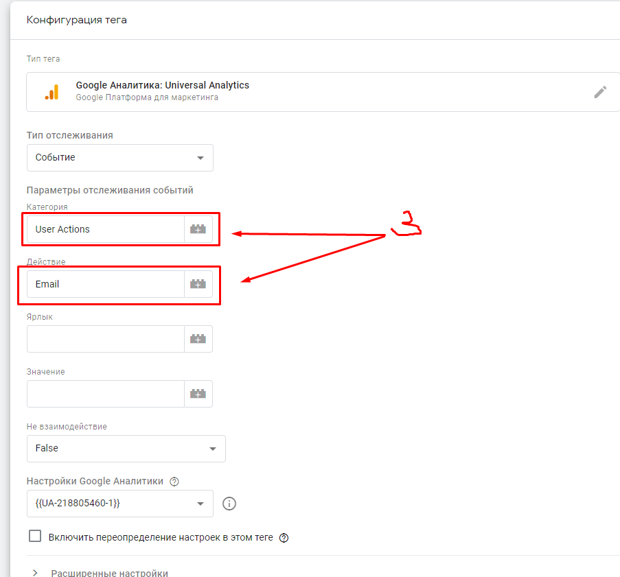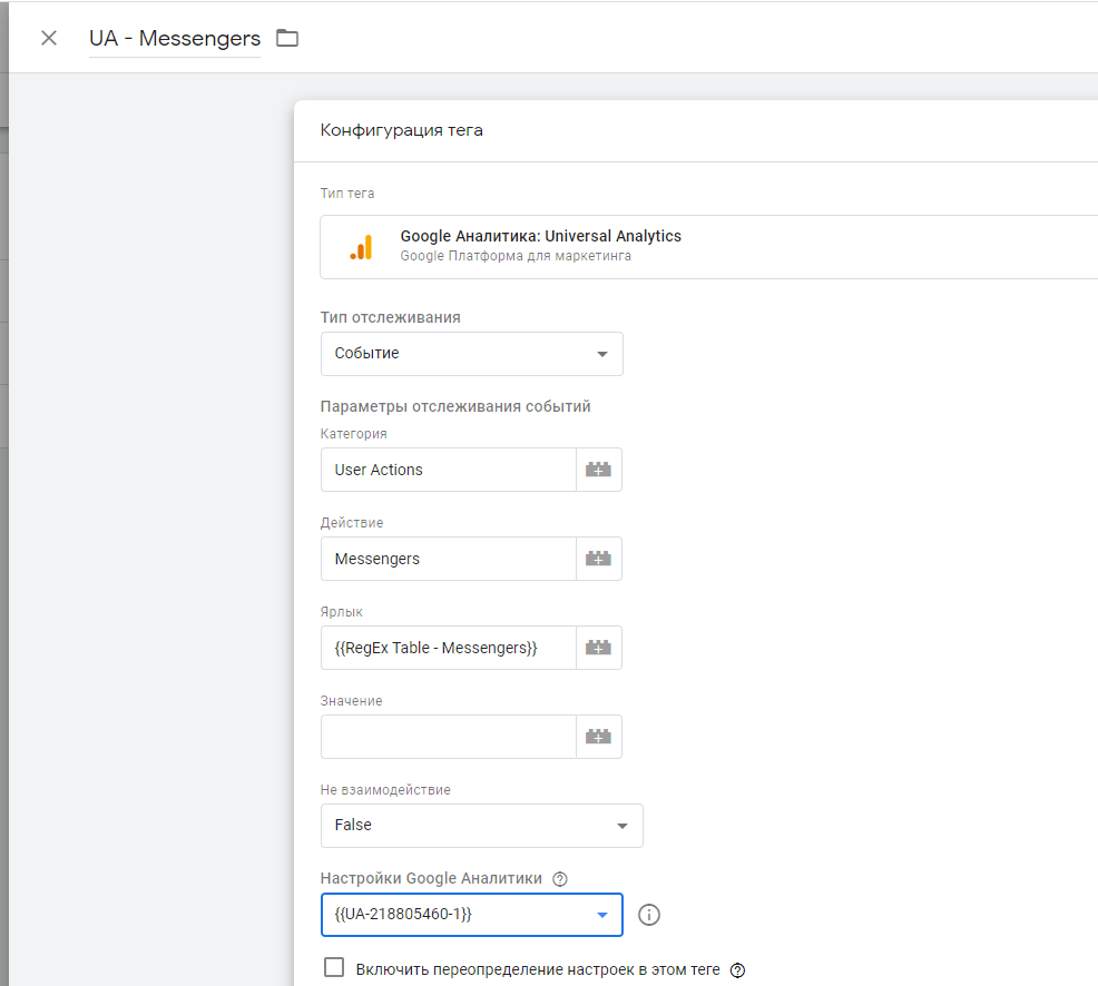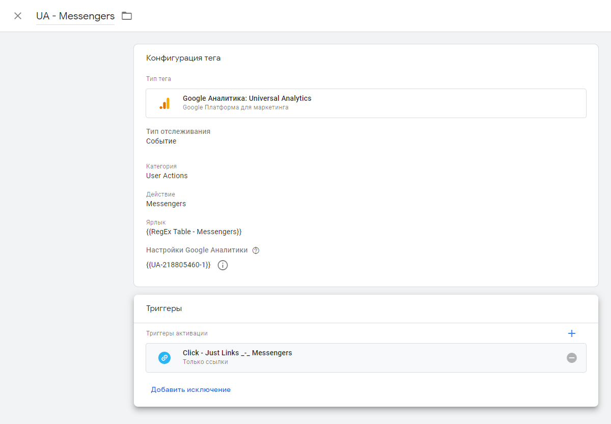 Про те, як налаштовувати теги, ви вже знаєте і встигли розібратися в цьому на попередніх прикладах, тому пропустимо цей етап у розгляді прикладу. Перед збереженням, тег має виглядати таким чином.