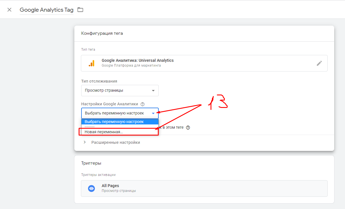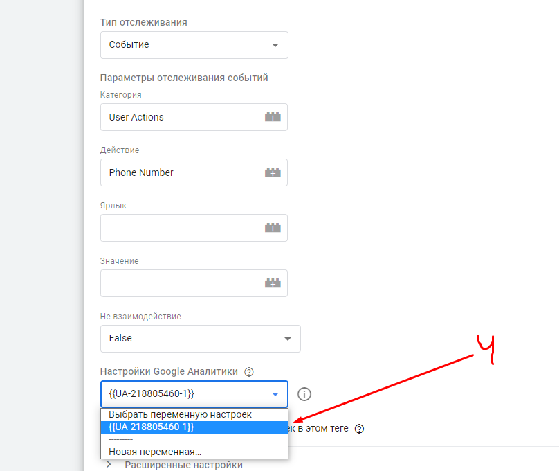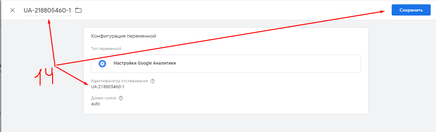 Ідентифікатор нам знадобиться, додавши змінну Установки Google Аналітики.