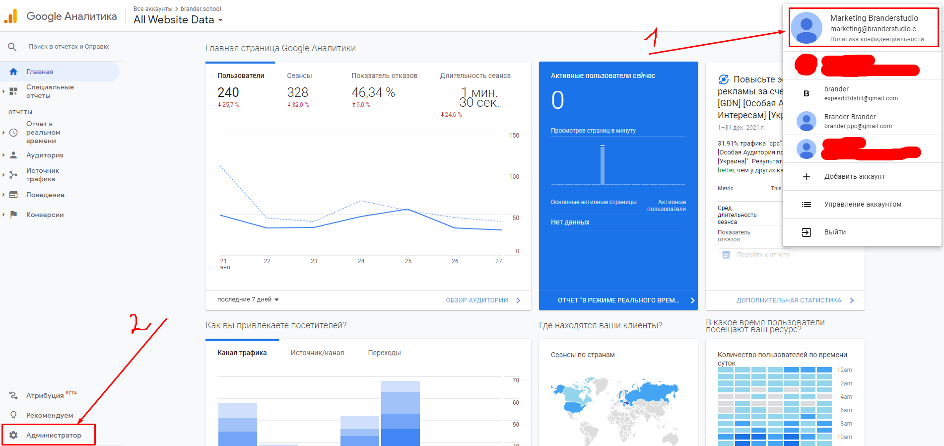Важливо! Щоби мати можливість проводити налаштування вищеперелічених речей, необхідно створити новий Google акаунт або отримати доступ необхідного рівня до вже наявного клієнтського акаунту, або в керівному акаунті нашої компанії.