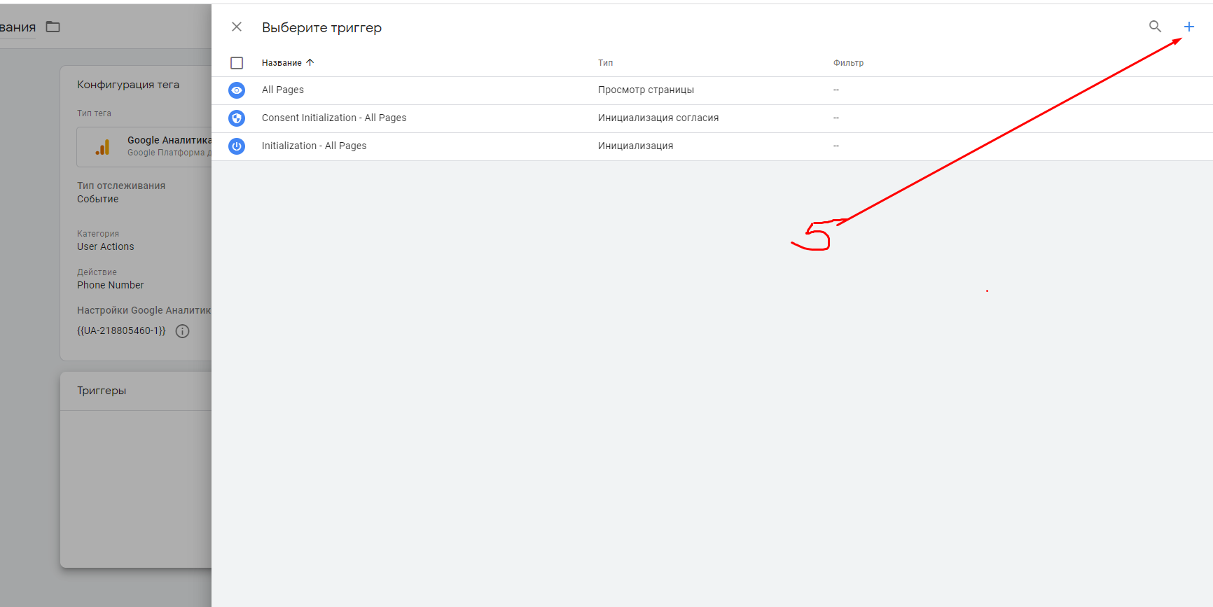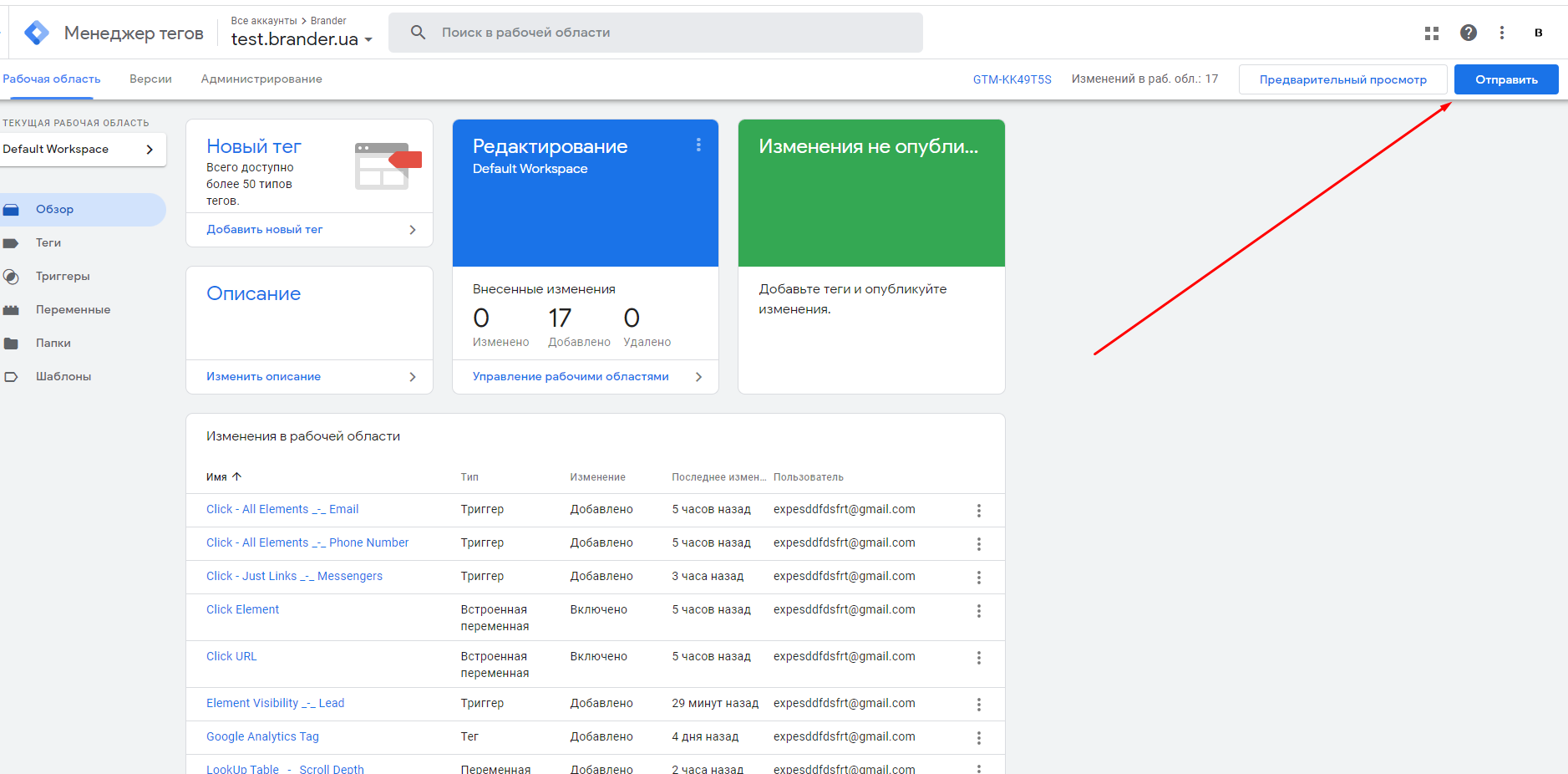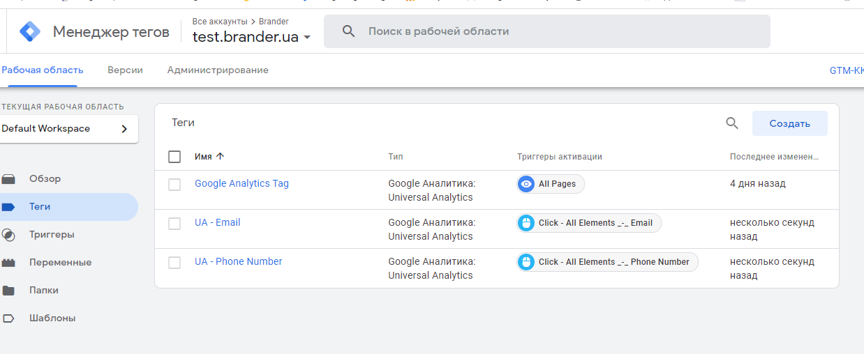 Коли список цілей для відстеження визначений, переходимо в акаунт GTM, щоби розпочати налаштування основних тегів та тригерів.