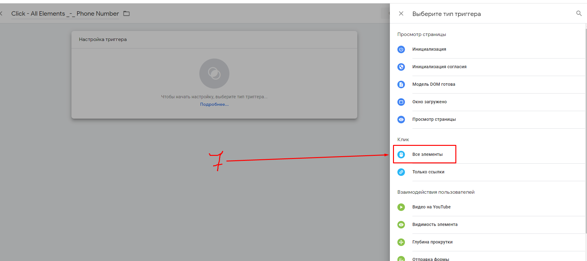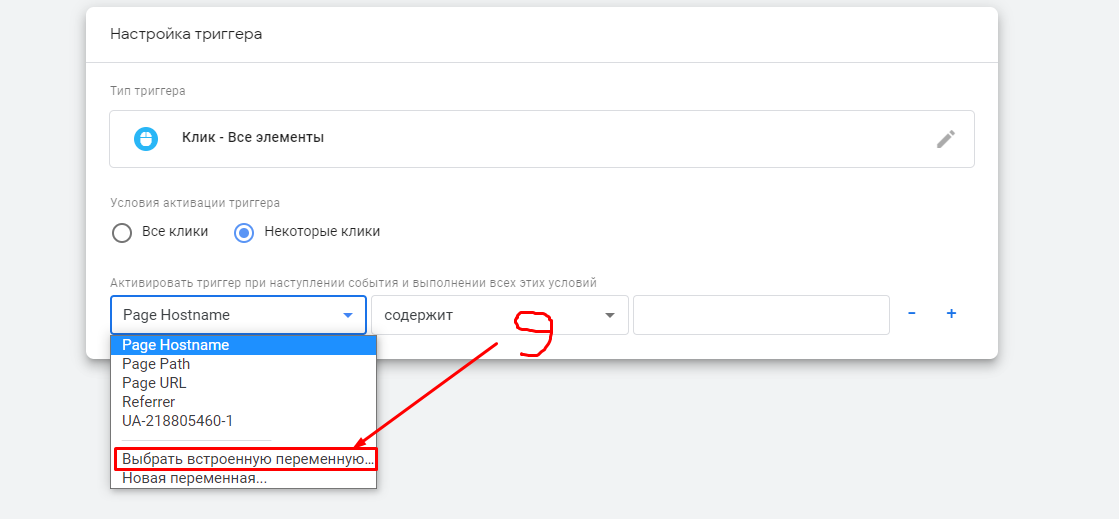 - Вибираємо змінну налаштувань та переходимо до створення тригера.