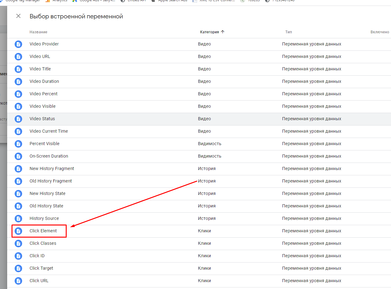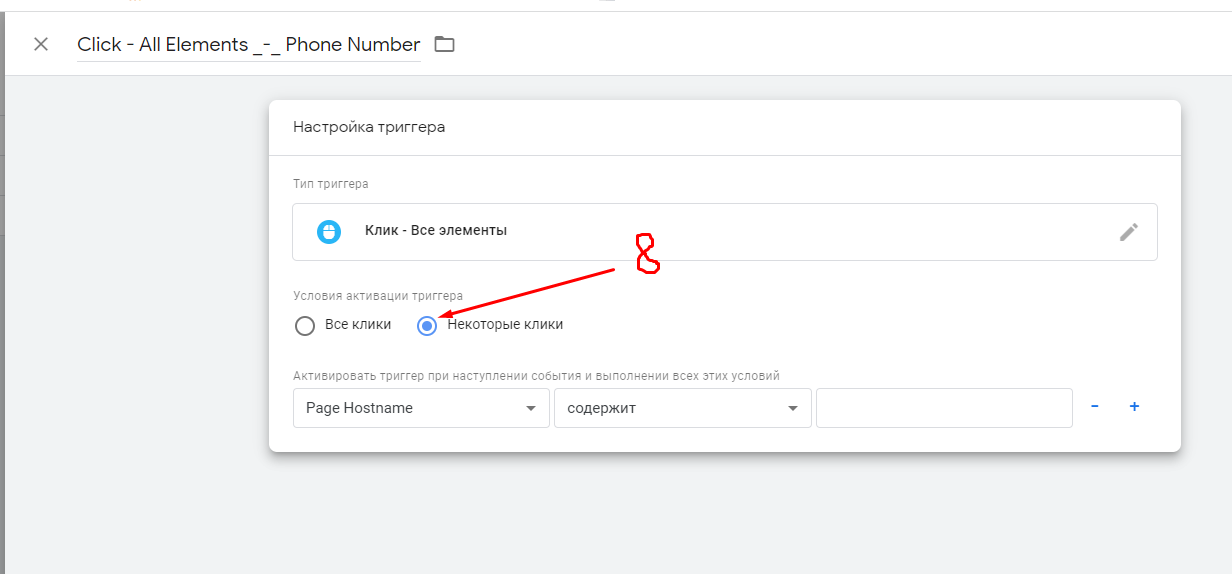 - Як умову активації необхідно вказати певне значення вбудованої змінної Click Element.