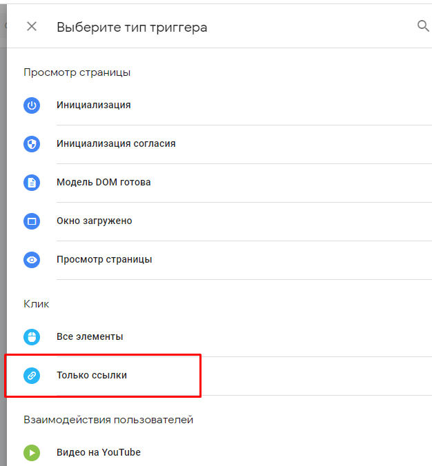 - Як умову активації тригера вибираємо деякі клаци за посиланнями.