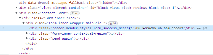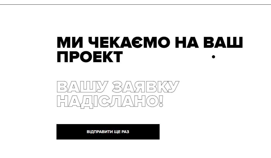 - Переходимо на сайт та надсилаємо тестову заявку. Після успішного надсилання форми бачимо відповідне повідомлення.