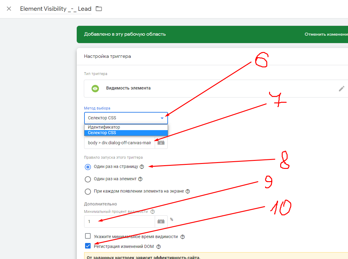 Тепер щоразу під час появи даного елемента на екрані відбуватиметься подія, яка враховуватиметься як досягнута ціль Lead.