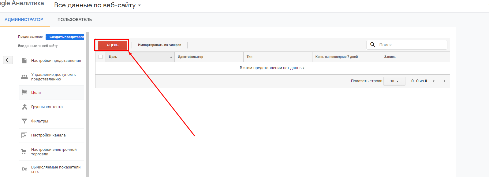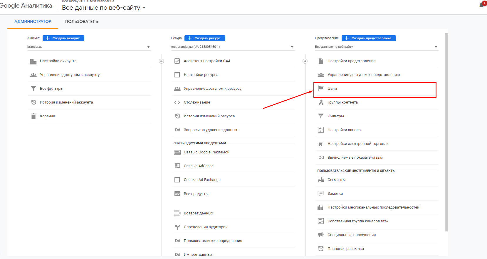 Щоби налаштувати цілі, на вкладці Адміністратор перейдіть до потрібного представлення та перейдіть на вкладку Цілі.