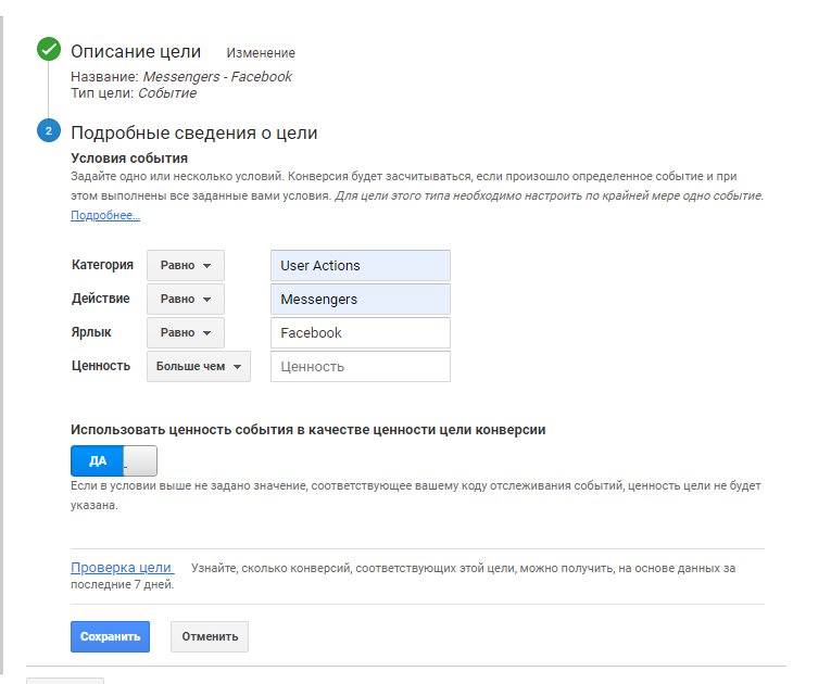 - Задаємо назву цілі (рекомендую використовувати значення поля Дія події).