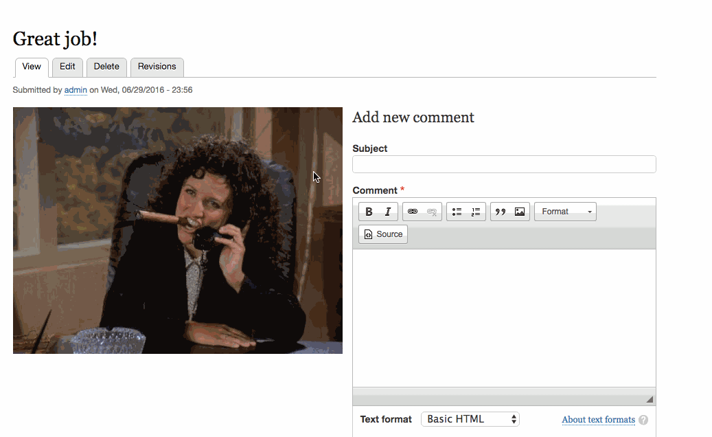 - Швидке редагування — введіть текст прямо в текстовий редактор Drupal, щоб скоротити час, необхідний для додавання і завантаження контенту на ваш сайт.
