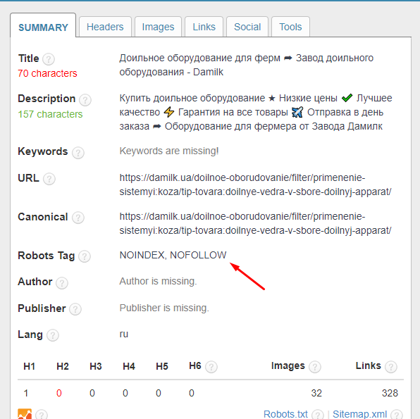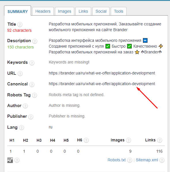 Канонікал можна перевірити в інструменті SEO META in 1 click, а також у коді сайту, який буде мати такий вигляд: