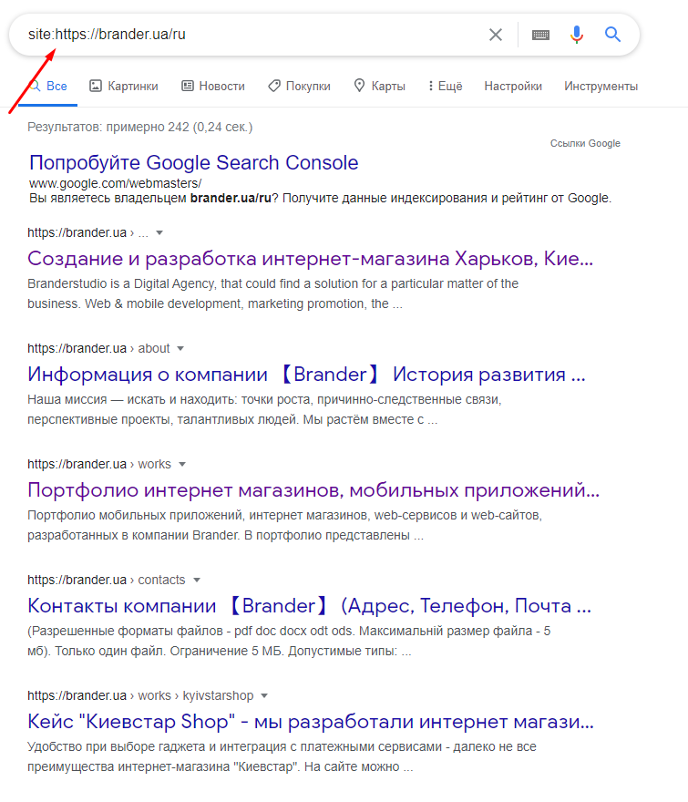 Почнемо з оператора site:. Цей запит дасть вам розуміння, скільки сторінок знаходиться в індексі Google. А також можна побачити сторінки, які повторюються повністю, які і будуть означати, що це дублі.