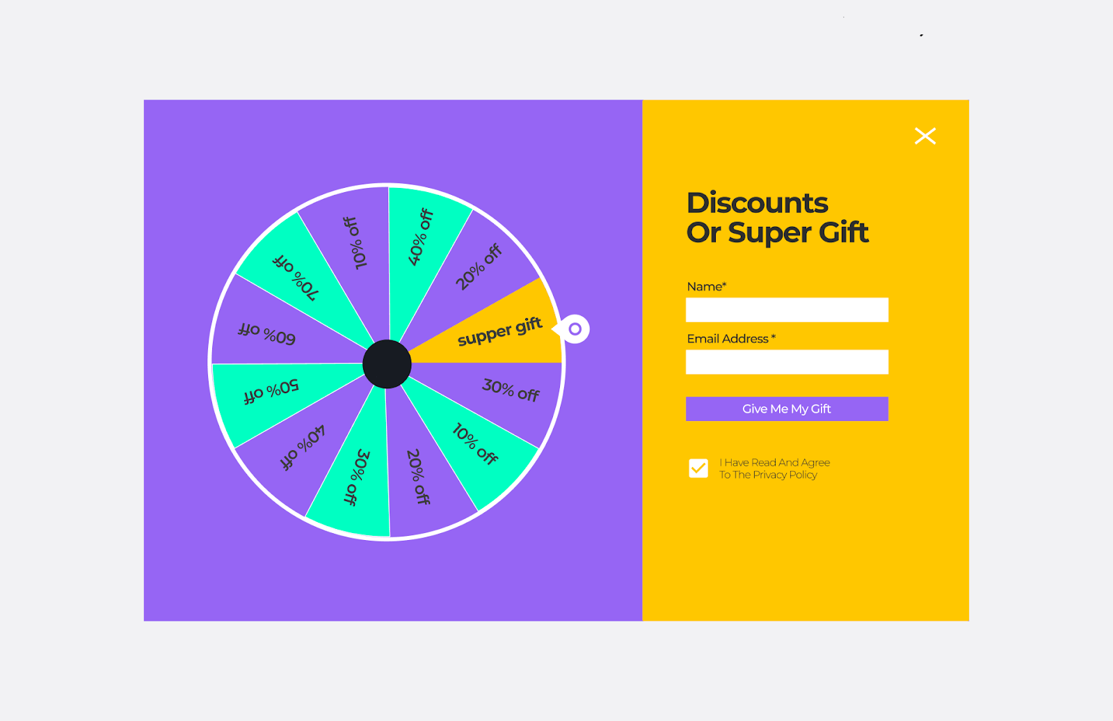 Можна піти далі та запропонувати інтерактив. Дайте користувачеві можливість виграти щось за підписку. Це може бути як міні-лотерея, так і обертання барабана із призами. Вони не повинні бути великими, достатньо невеликого промокоду чи безплатної доставки. Але такі дрібниці чіпляють аудиторію.