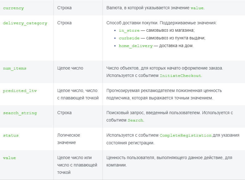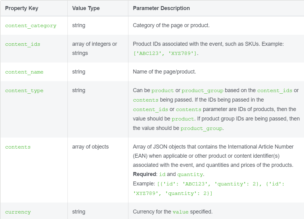 - Ціна і валюта у подіях View Content, Checkout і Покупка повинні відповідати інформації, зазначеній на сайті. Ці параметри обов'язково повинні бути динамічними.