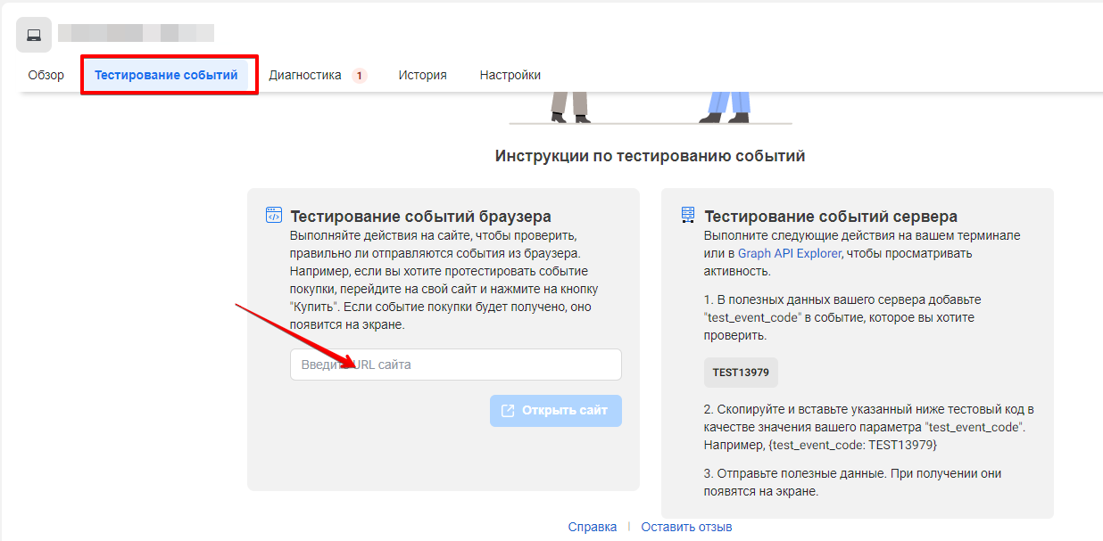 Після того як програміст виконає завдання, необхідно протестувати піксель на коректність трекінгу. Зробити це можна в Event Manager у вкладці "Тестування подій".