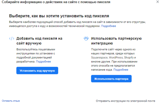 Далі необхідно вибрати спосіб установки коду пікселя.