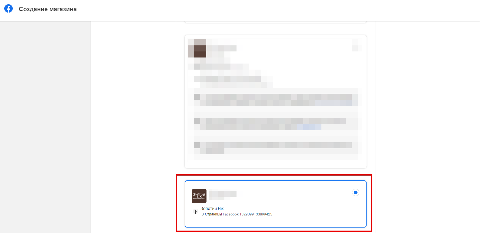 Виберіть сторінку, на якій буде опубліковано ваш магазин.