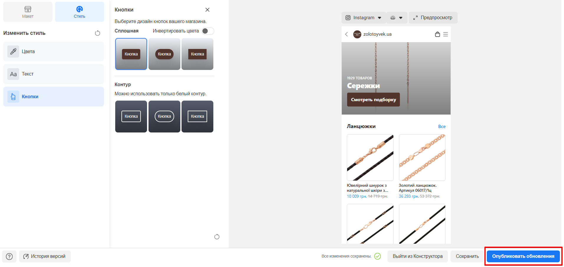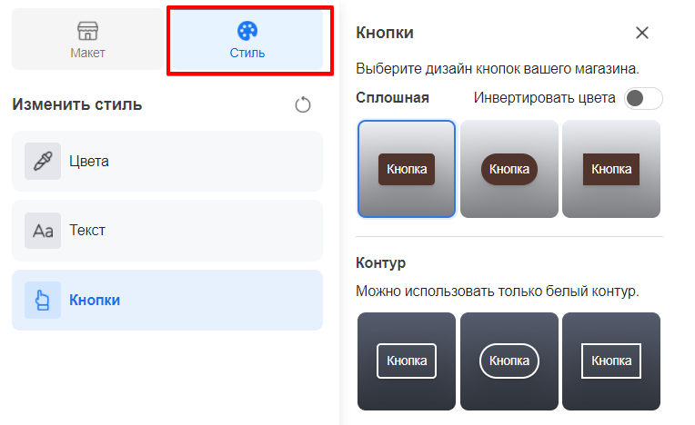 У розділі "Стиль" можете змінити розмір і розташування заголовків, дизайн кнопок магазину, колір посилань і т.д.