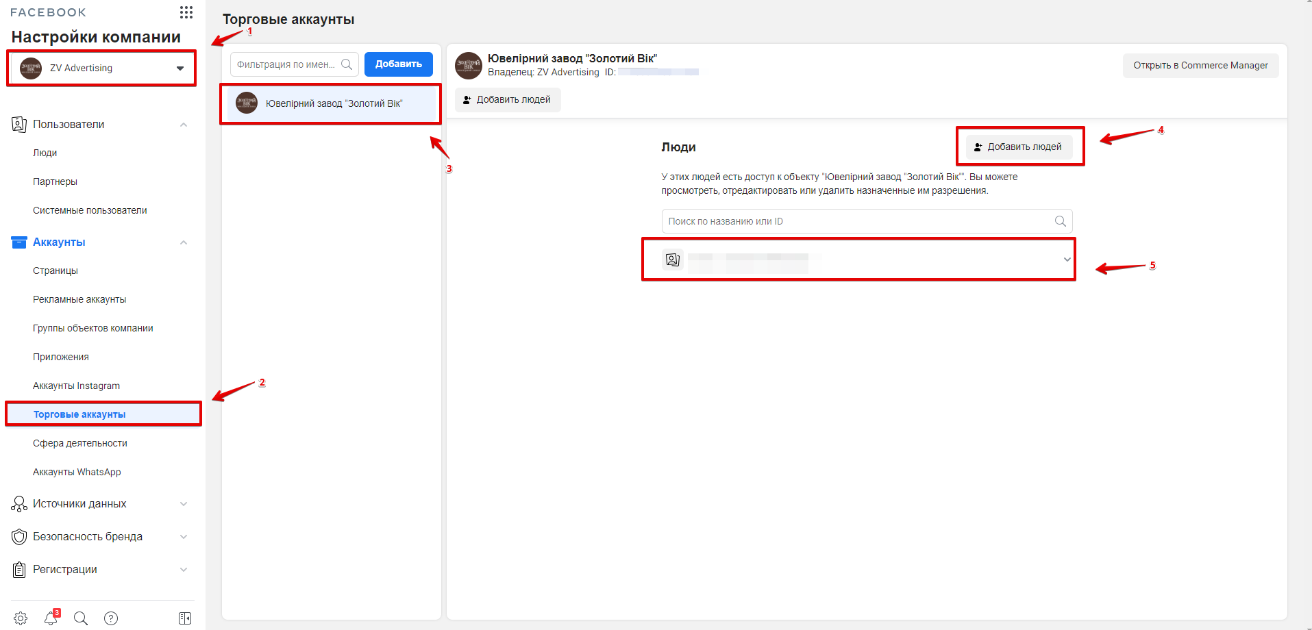 - Після вибору необхідного Торгового акаунта натиснути кнопку "Додати людей" і вибрати користувачів, яким хочете відкрити доступ.