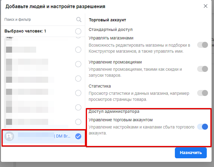 У "Стандартному доступі" ви можете надати доступ до окремих ресурсів. Наприклад, до статистики, управління акціями і т.д.