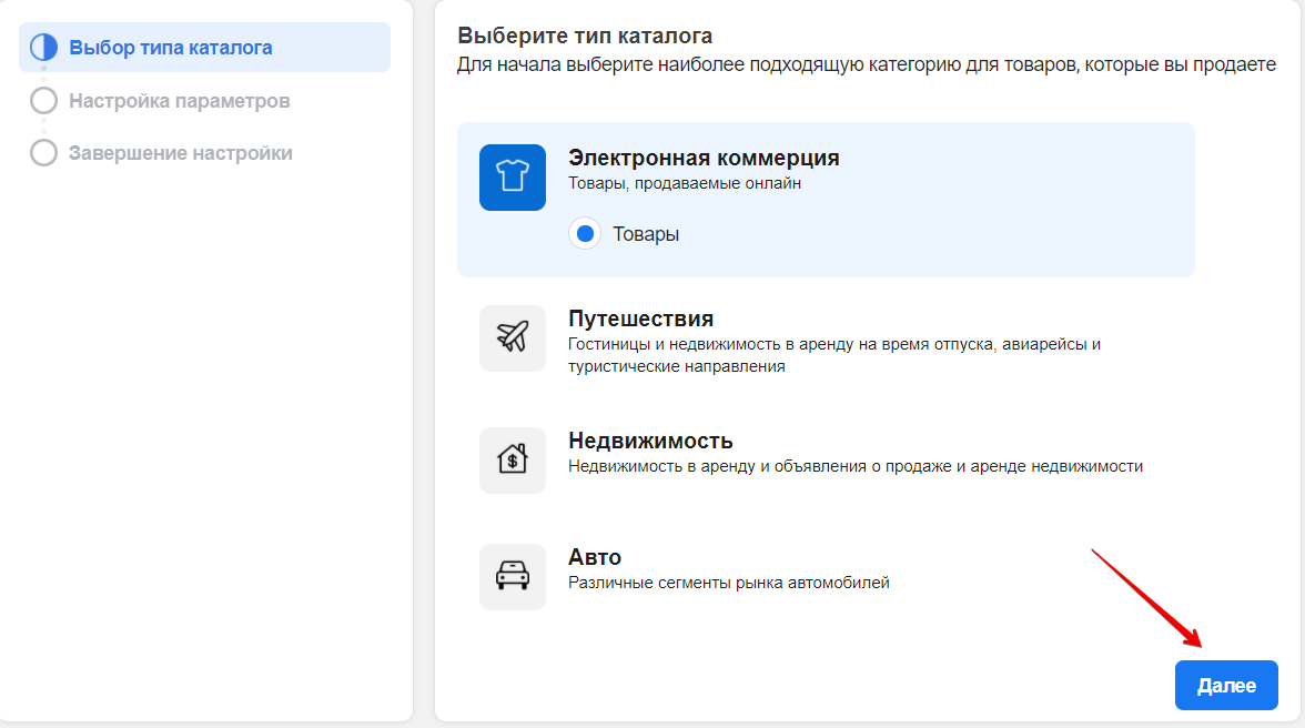 - Виберіть тип каталогу, який буде відповідати товарам або послугам, які ви хочете продавати.