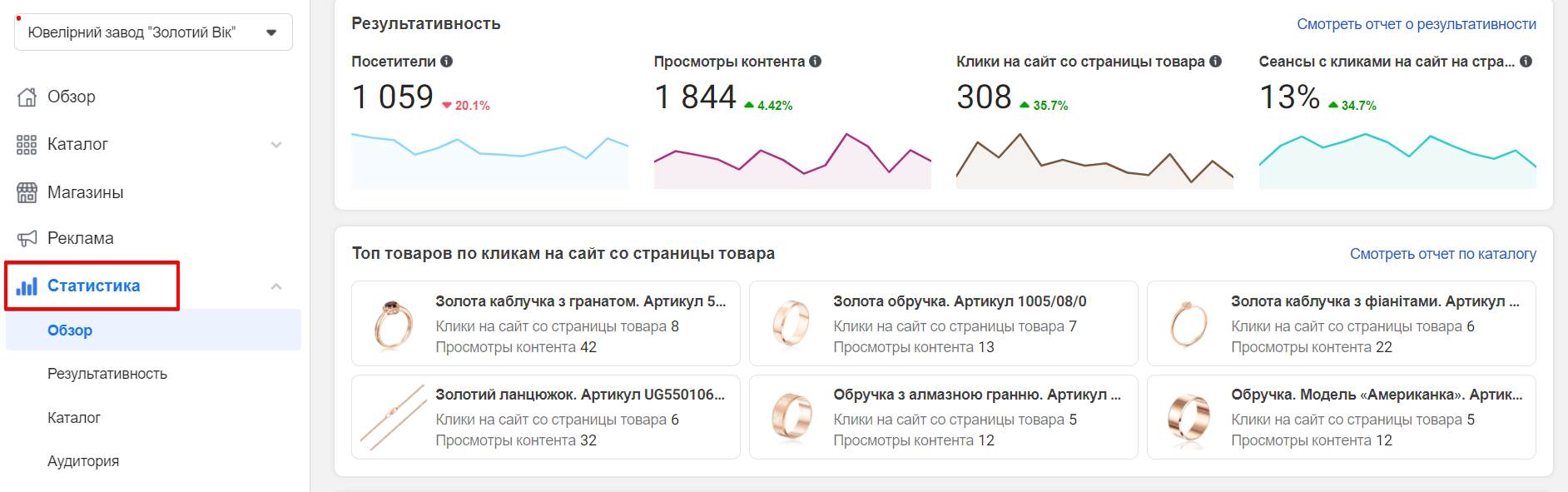 На прикладі мережі магазинів ювелірних виробів "Золотий Вік" ми продемонстрували результати роботи Facebook Store за два тижні.