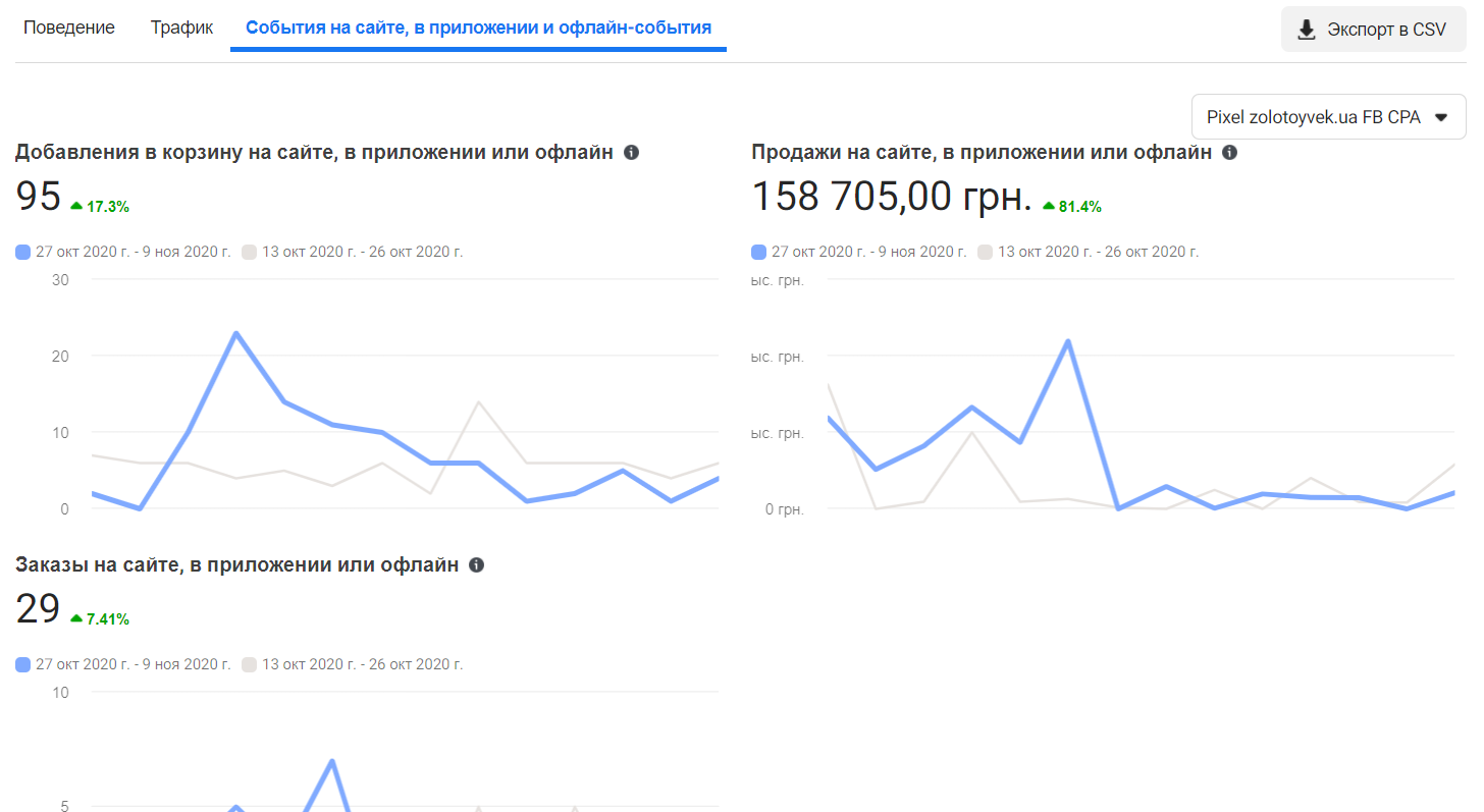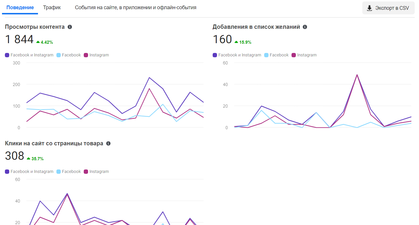 У "Поведінці" можете відстежити кількість переглядів контенту, переходи на сайт з картки товару, додавання у список бажань.