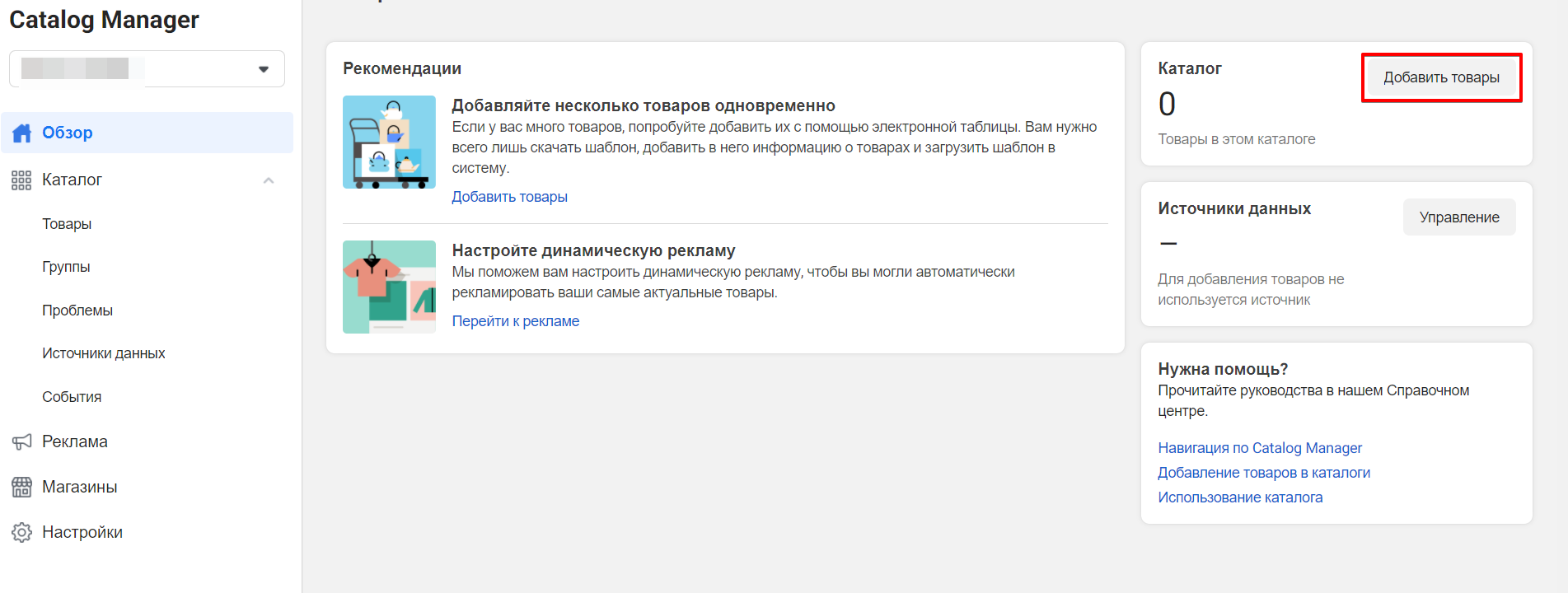- Для завантаження товарів у каталог перейдіть на вкладку "Джерела даних" і натисніть “Додати товари".