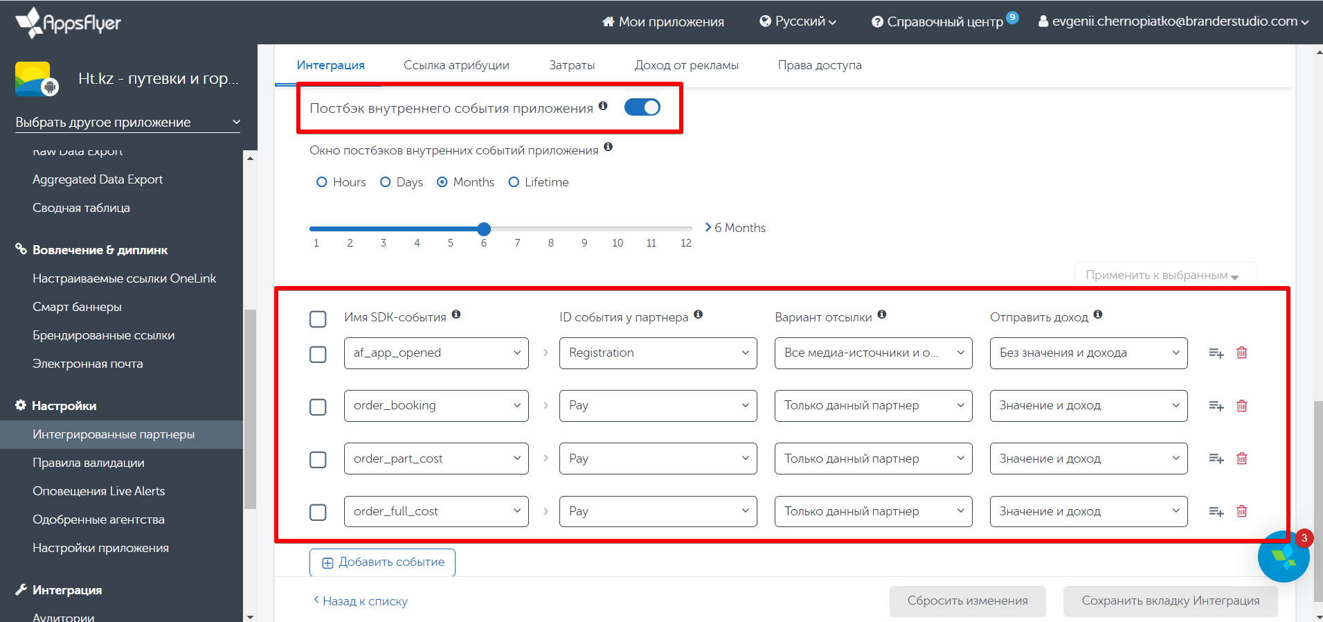Наприклад, у SDK є подія order_booking (бронювання туру) у майданчика Tik Tok це подія застосунку PAY. Плюс можна налаштувати передачу значень та доходу для внутрішньої оптимізації. Важливо запам’ятати: постбеки завжди надсилаються відповідно до поточних налаштувань вікна атрибуції.