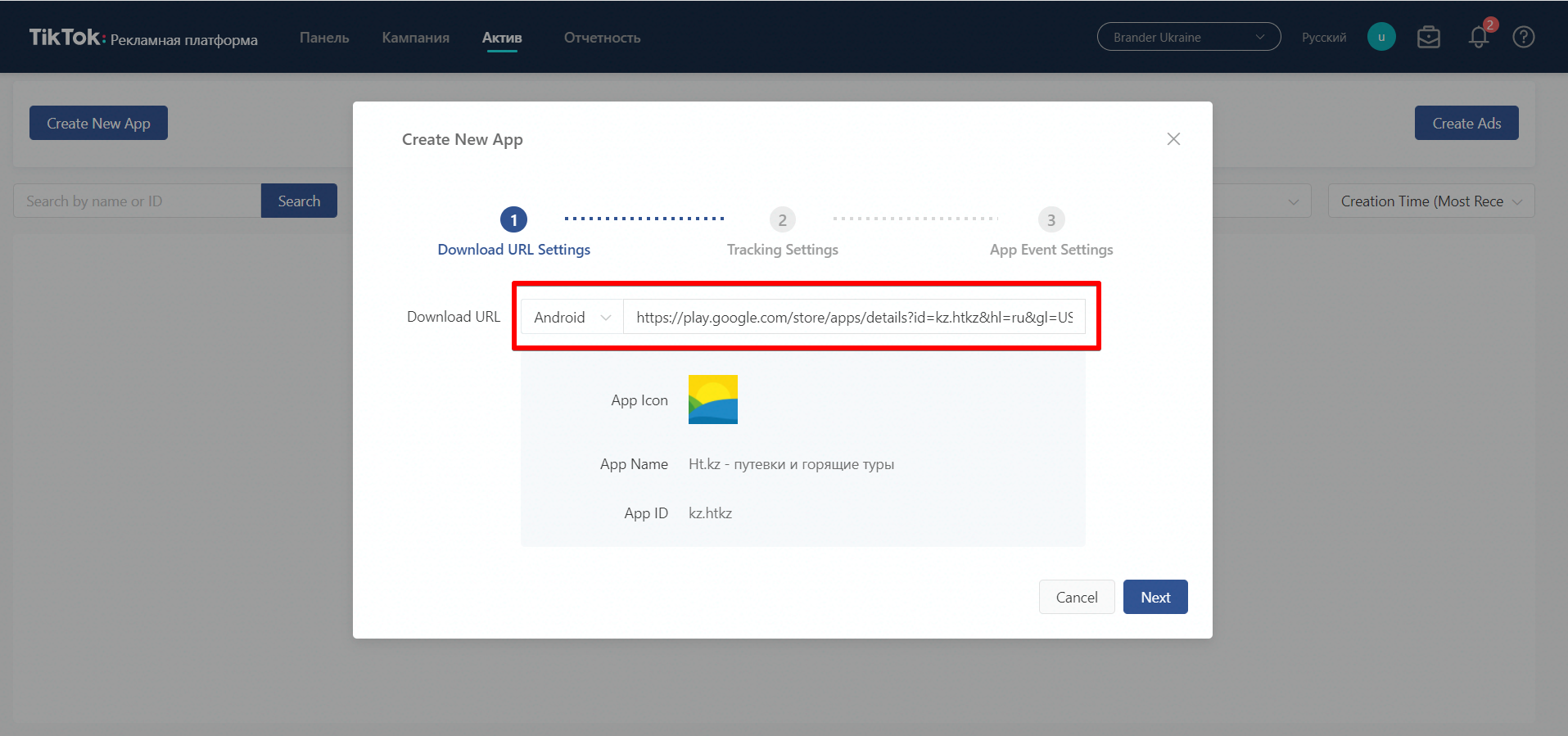 - Заходимо в кабінет Tik Tok в події та тиснемо подію застосунку.