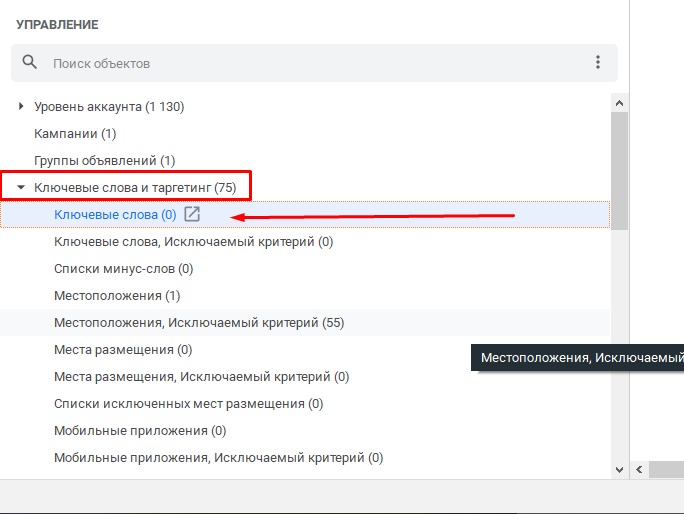 Після того, як ви підготували таку таблицю, скопіюйте її (включно з назвами стовпців). Далі перейдіть до програми. У розділі “Ключові слова та Таргетинг” вам знадобиться пункт “Ключові Слова”.