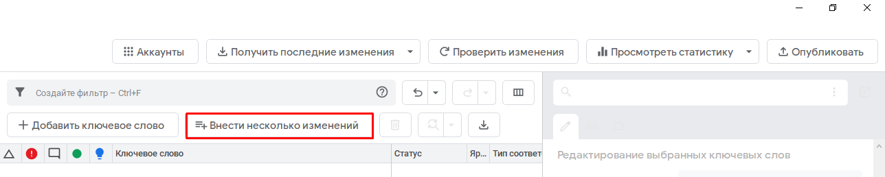 Якщо у вас є готовий список ключових слів, які ви хочете додати до кампанії, за допомогою редактора це зробити набагато швидше.