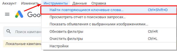 В Едиторі переходимо до розділу "Інструменти" та обираємо "Знайти повторювані ключові слова".