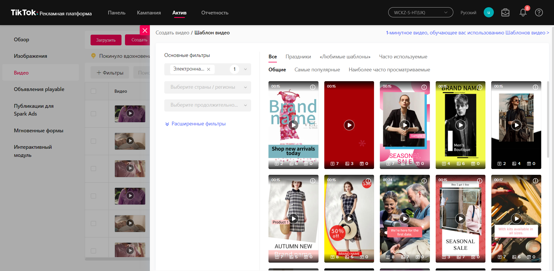 - Ще один варіант — створити ролик із зображень та відео. Для цього використовуємо шаблони рекламного кабінету.