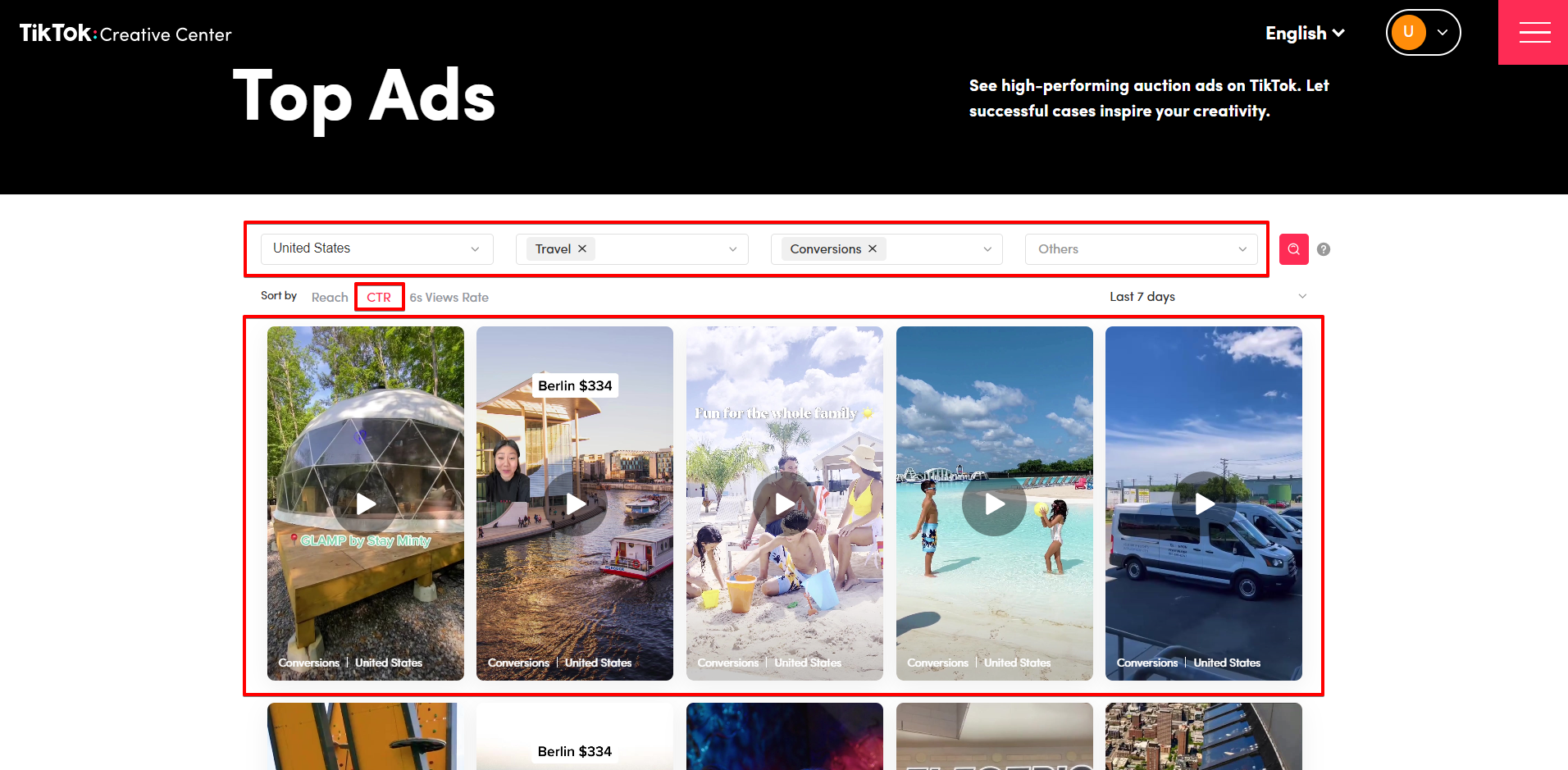 - Переходимо до Tik Tok Creative Center та знаходимо Top Ads.