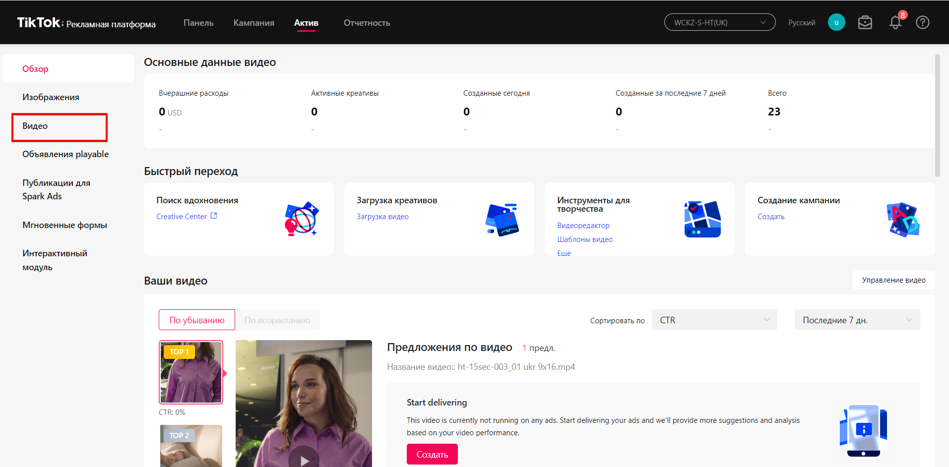 - Заходимо в Tik Tok Ads — Актив — Креативи.