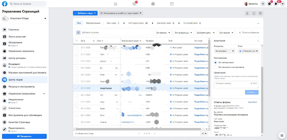 Для тих, хто тільки починають роботу, є Центр лідів на Facebook. Цей інструмент дозволяє працювати з інформацією клієнтів зі сторінки компанії прямо на Facebook.