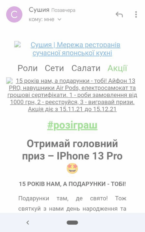 - не робіть листа надто довгим. Є ймовірність, що користувач просто не дочитає до моменту, що його зацікавить, і натисне на "Спам". Використовуйте такі функції, як “Приховування блоків на мобільному пристрої”;