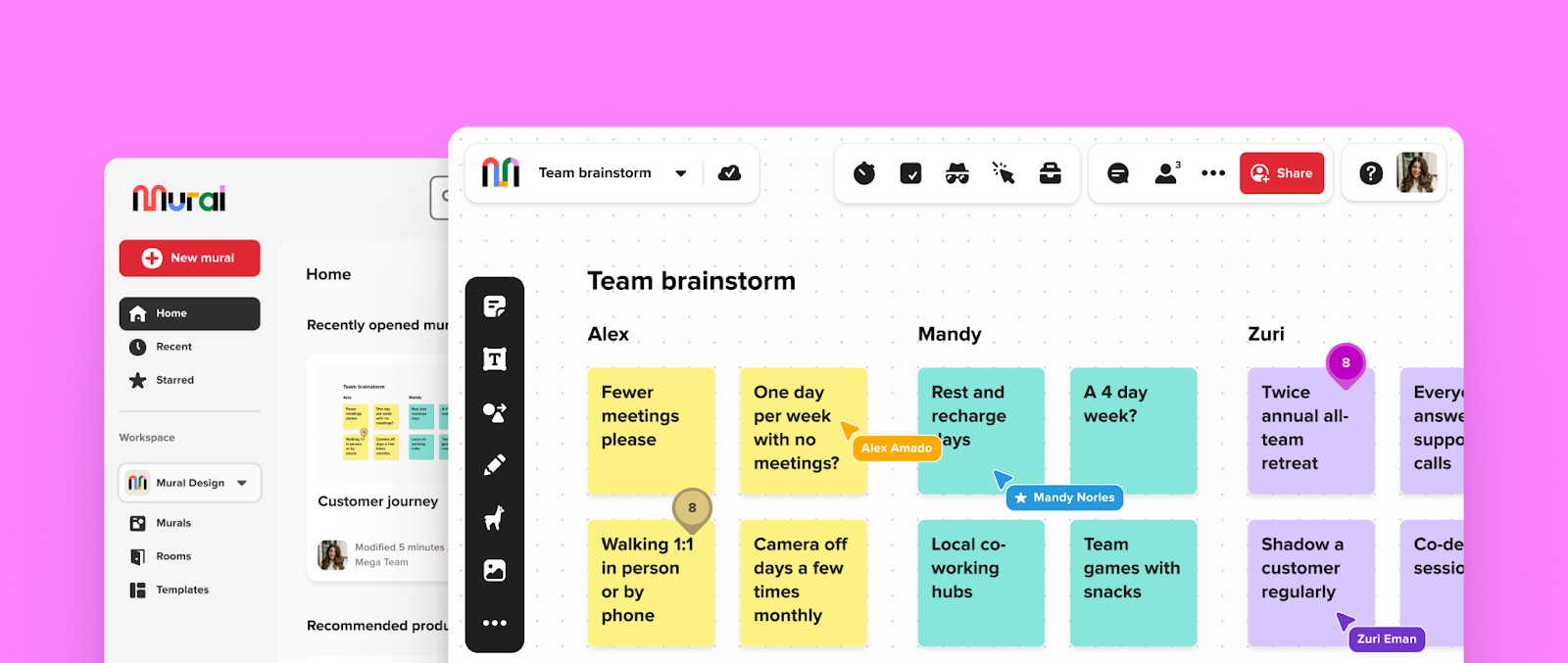 • Mural — зручна система (створена в США) для роботи в команді. Зручна система дощок, де можна не лише закріплювати медіа, а й документи та залишати до них позначки, коментарі тощо.