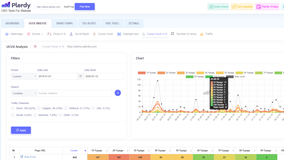 • Plerdy. Сервіс, який дає можливість проводити аналітичні дослідження та перетворювати відвідувачів на покупців.