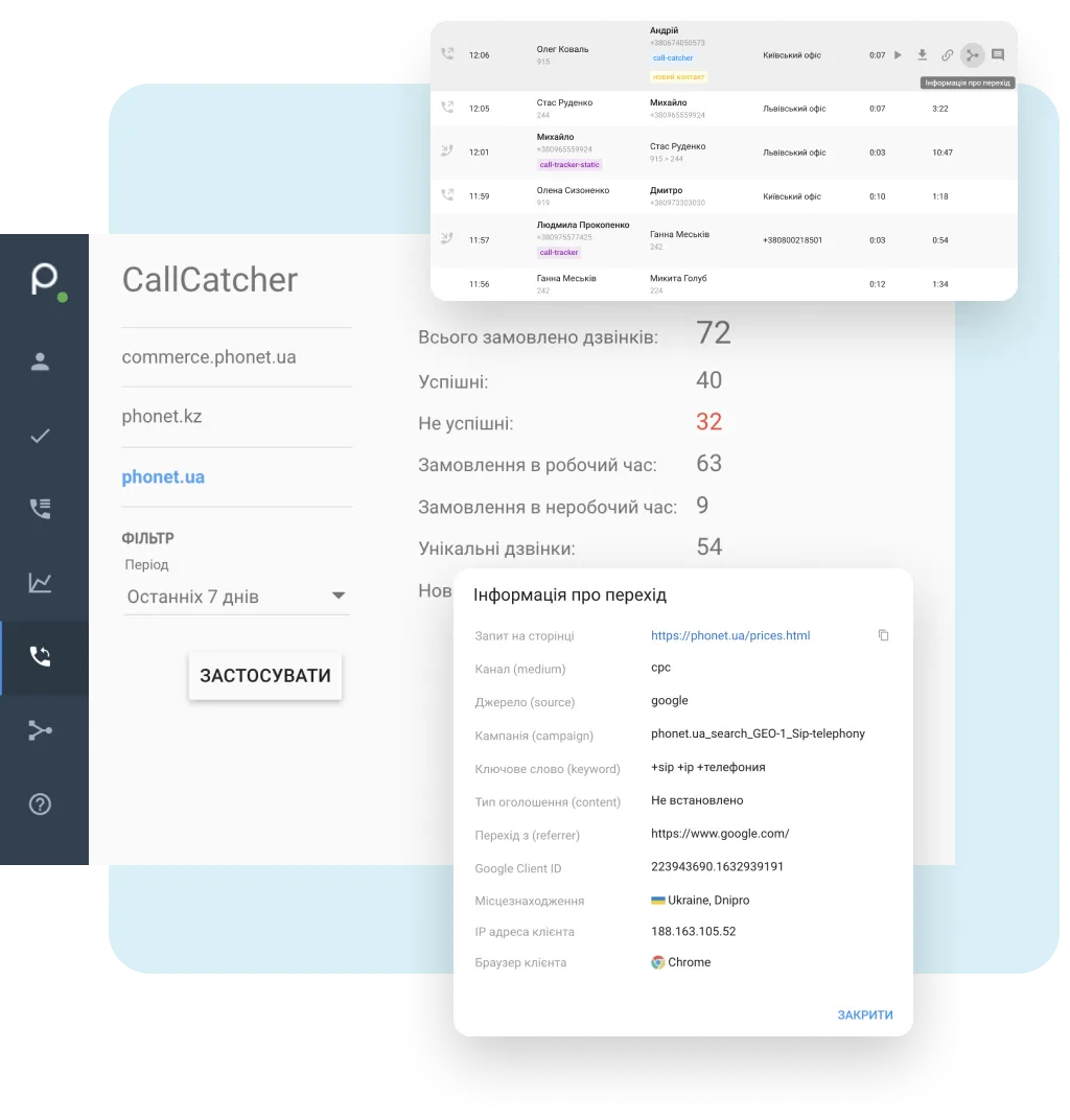 Для колтрекінгу використовували такі сервіси, як Телфін, Callibri, Mango АТС, CallbackHunter.