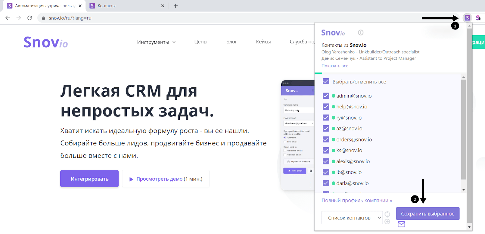 • Snovio. Являє собою інструмент автоматизації для проведення аутріч-кампаній, тобто для збору інформації в інтернеті, наприклад, адреси електронної пошти, а значить, допомагає в пошуку нових клієнтів.