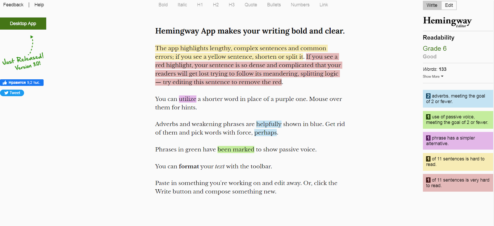 • Hemingway App. Являє собою інструмент для письма. Він стежить за структурою фраз і речень і пропонує виправлення.